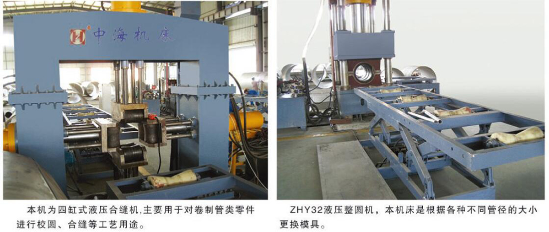 該設備是大口徑(jìng)直(zhí)縫埋弧焊管生產線上的五大主機之一,主機由立柱(zhù)、油缸、滑塊、油箱、橫梁、工作台、預凸裝置(zhì)。模具、液壓比例伺服係統、電氣數控係統組(zǔ)成。主機有3個數控軸,輔機(jī)有5個(gè)以上數控(kòng)軸。輔機由縱向接料裝置、側(cè)擋料機、前後操(cāo)作機、前後托料架、側出料裝置組成。