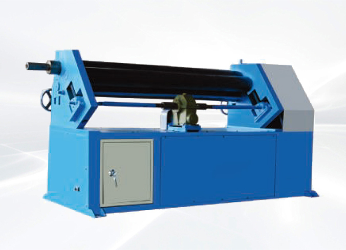 該(gāi)機結構型式為三輥非對稱式,下輥為主傳動,並(bìng)做垂直升降運動,以便夾緊板材。通過下輥齒輪與上輥齒輪齧合,同時作為主(zhǔ)傳(chuán)動,側作傾升降運動。具有預彎、卷圓(yuán)多重功能,結構緊湊操作維修方便