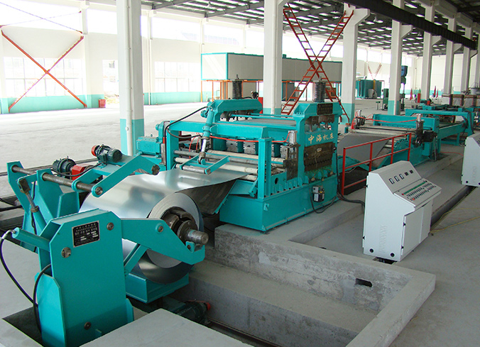 該生產線是將較(jiào)薄金屬卷板整平、剪切(qiē)成塊狀板材的(de)專用設備。通常由上料小車、開卷機、托(tuō)板壓引裝置、校平主機、活動過橋、導向糾(jiū)偏裝置、定尺機構、覆膜裝置、剪板機、輸送工作台、氣(qì)動排料架、液壓升降(jiàng)垛料台、運料滾道台及液壓係(xì)統、電氣控製係統(tǒng)等(děng)組成,協同動作PLC控製。